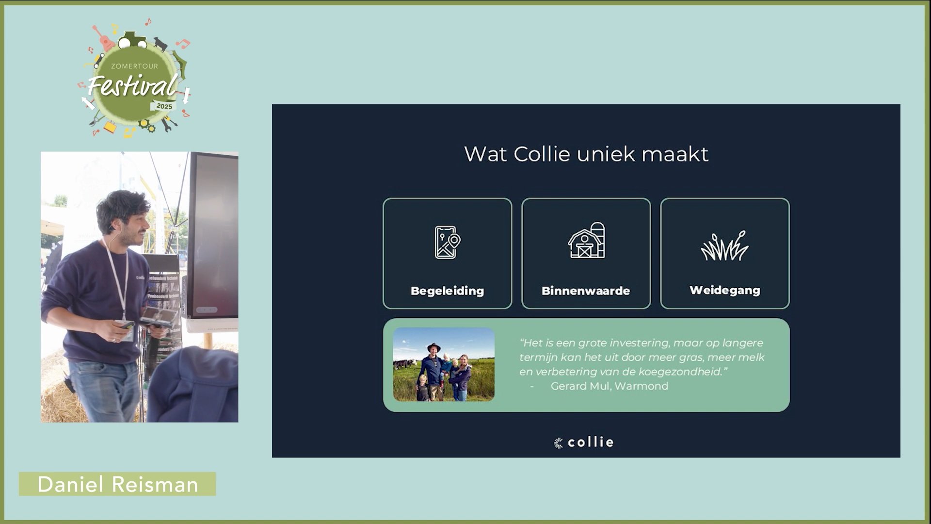 Op het Zomertour Festival sprak Daniël Reisman, mede-oprichter van Collie, over de nieuwste ontwikkelingen in draadloos afrasteren.